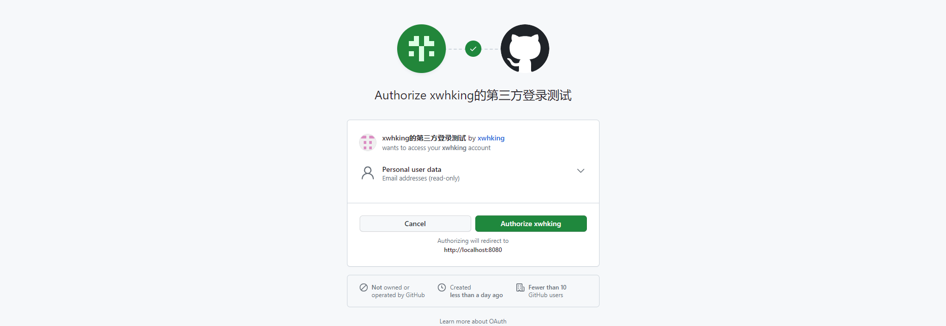 比如我们可以记录用户的,id,用户名,邮箱,如果用户是第一次登录,就新创建一条记录,如果不是就进行数据库数据的比对进行登录,如果有错误,不让登录就好。没有错误就把页面重定向到对应的前端页面,并且把用户信息返回给前端。这样应该就算是第三方登录了吧!